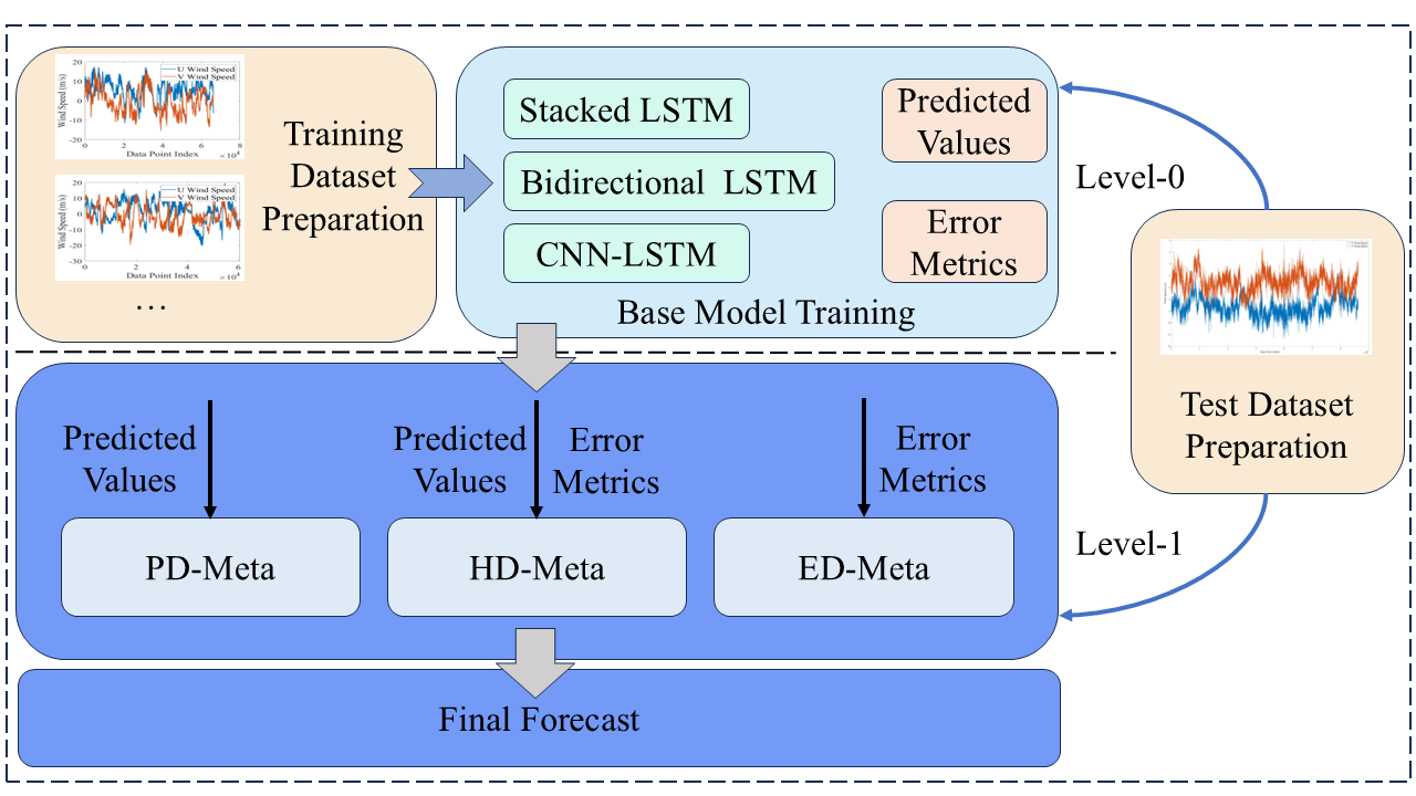 针对这一问题,研究人员提出了一种创新性的混合驱动元学习(HD-Meta)预测框架。该方法通过多模型融合与元学习机制,将不同学习器的预测结果和误差信息进行联合建模,从而在提升预测精度的同时兼顾计算效率。实验结果表明,HD-Meta 在短时风速和风向预测任务中均优于传统方法,尤其在捕捉微小风向变化方面表现突出,为无人帆船在复杂海洋环境中的自主航行提供了更加可靠的风场感知支持。