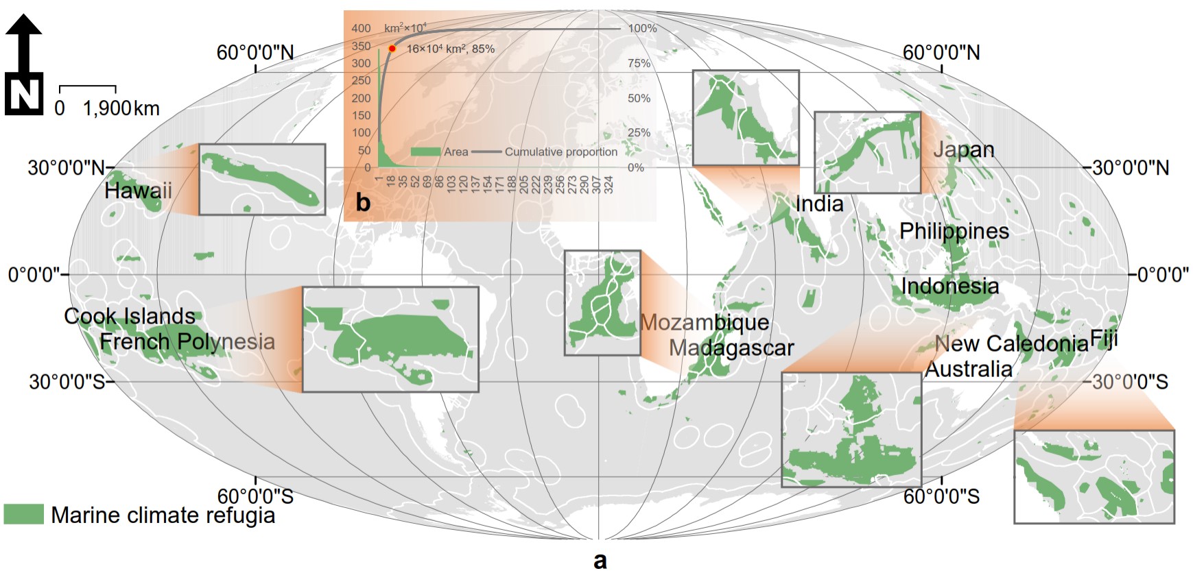 相关研究成果以“Identifying global marine climate refugia through a conservative approach to ocean biodiversity preservation”为题,发表于《Nature Communications》,论文第一作者为庄鸿飞副研究员,通讯作者为张朝晖研究员与中山大学杨立副教授。该研究获得了国家自然科学基金、青岛市博士后资助项目及国家重点研发计划项目等资助。
