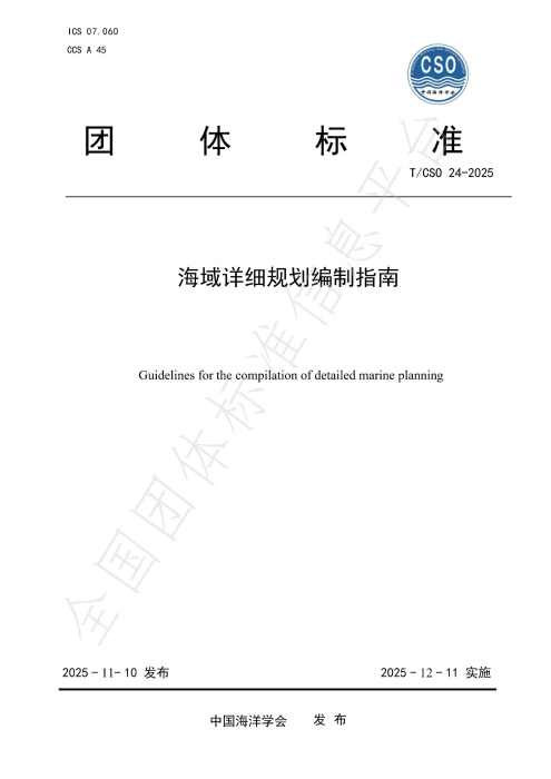 近日,由我所海岸带中心牵头编制的《海域详细规划编制指南》(简称《指南》)(T/CSO 24-2025)团体标准由中国海洋学会正式发布。
