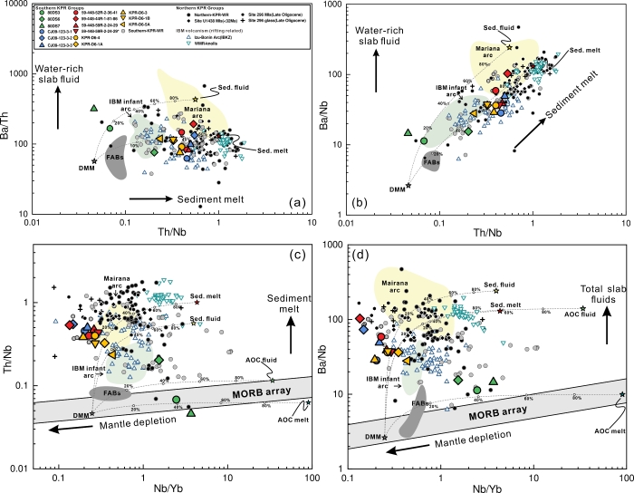 图1 九州-帕劳脊熔岩与IBM典型弧岩浆的俯冲组分输入特征