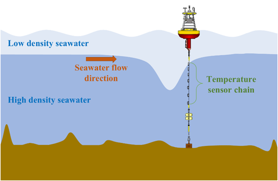 图1、利用海洋浮标的内波观测示意图